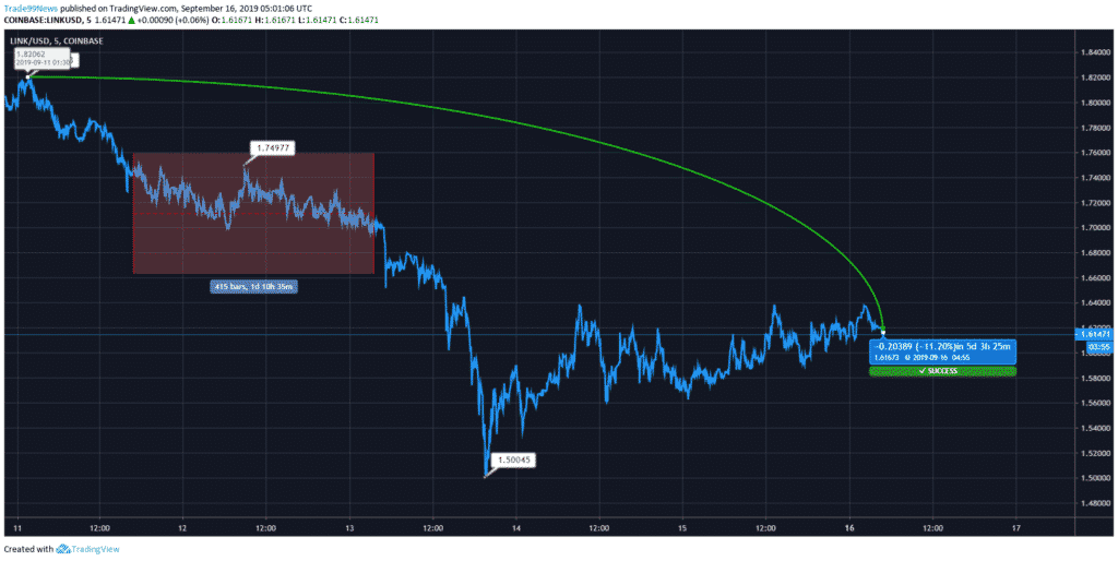 Link price comparison over the past 5 days gives a better insight about its current performance and trend. Chainlink was trading at $1.82 on September 11, 2019 around 01:30 UTC. Since the latter part of the day with a minor fall, LINK price was almost constant at $1.74 till 03:20 UTC on September 13,2019. Later, price of Chainlink witnessed several falls and it reached as low as $1.5 at 19:35 UTC. From past 3 days, the price of LINK has picked up some pace and has risen by 7% as compared to the last fall. However, the present trend indicates that prices may fall marginally.